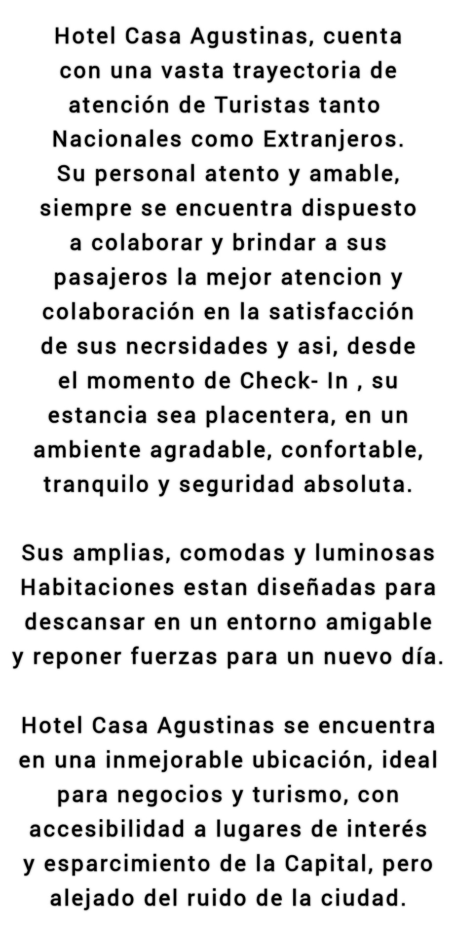 Reserva tu estadía en Hotel Casa Agustinas y vive la tranquilidad de un entorno histórico y familiar. Habitaciones cómodas, atención personalizada y servicios diseñados para ti.